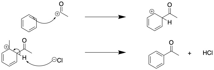 - electrophilic substitution such as the Friedal-Crafts acylation;