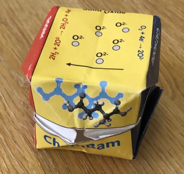 Download and print onto A4 paper (see activity resources at top of page), preferably in colour, to make a 3D cube that shows alkaline and solid-oxide fuel cells: