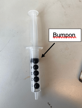 Add adhesive rubber bumps (Bumpons) to label the volume that the notched syringe measures.