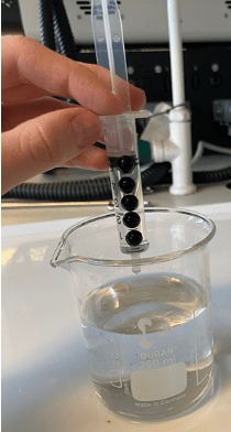 Transfer the liquid remaining in the syringe into the reaction vessel.