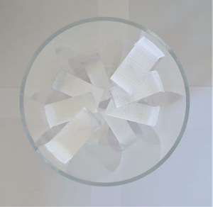 - Fold the strips in half so the tape sticks together, leaving the ends unstuck (sideways on this will look like a T shape)